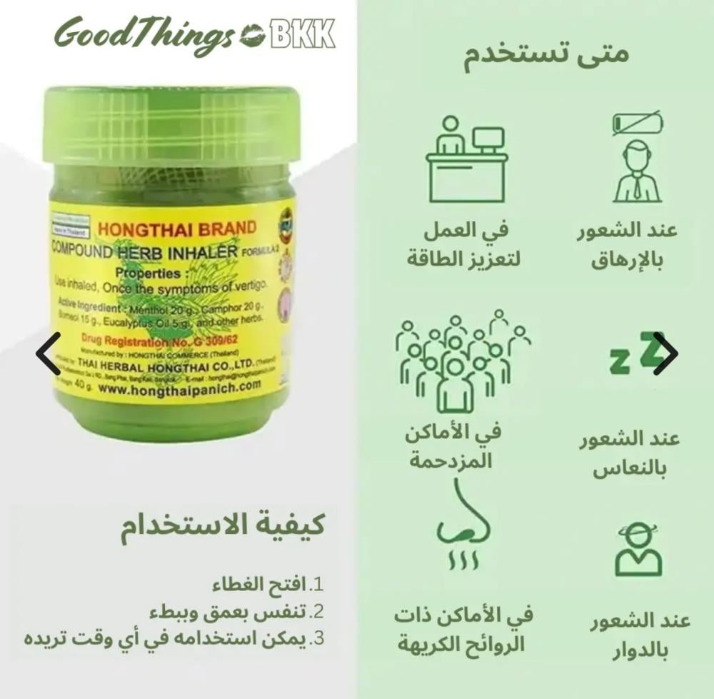 ✨ عيش الانتعاش الطبيعي مع فكس تايلندي للاستنشاق أخضر من هونج تاي، تركيبة تقليدية فريدة 100% مستخلصة من الأعشاب والبخور الطبيعية.