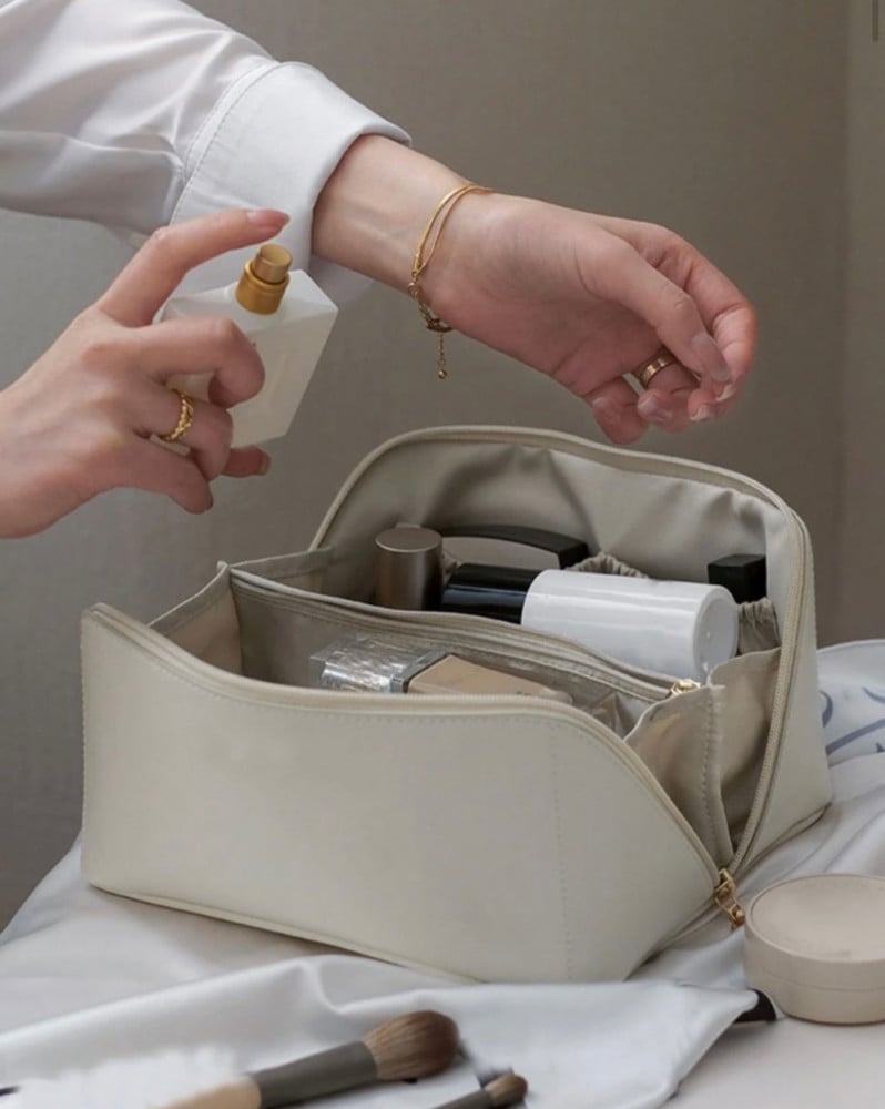 حقيبة مستحضرات التجميل متعددة الطبقات بيج