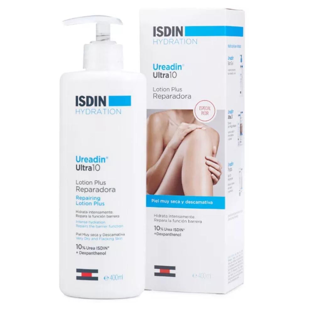 لوشن ISDIN Ureadin Ultra 10 Plus 400ML لوشن بلس. للبشرة الجافة جدًا والمتقشرة. أقصى قدر من الترطيب: يساعد على تخفيف الحكة واستعادة نعومتها الطبيعية. دواعي الاستعمال: لوشن مرطب مكثف للجسم للعناية اليومية وحماية البشرة الجافة جدًا والمتقشرة. الفوائد: ترطيب فوري يساعد على تقليل الحكة الناتجة عن الجفاف. يشجع على استعادة حاجز الجلد بفضل مزيج اليوريا ISDIN والديكسبانثينول. مساعد لعلاج اضطرابات حاجز الجلد مثل جفاف الجلد والبشرة الناضجة. ملمس خفيف وغير دهني وسريع الامتصاص. الجرعة: ضعيه مرة أو مرتين يوميًا على الجلد حتى يمتص تمامًا. للحصول على أفضل النتائج، استخدميه مع جل الاستحمام Ureadin. التركيبة: اليوريا ISDIN 10%. ديكسبانثينول 3%: يصلح الجلد ويخفف الحكة ويحسن وظيفة الحاجز. المطريات: تعيد الطبقة الدهنية لحاجز الجلد.