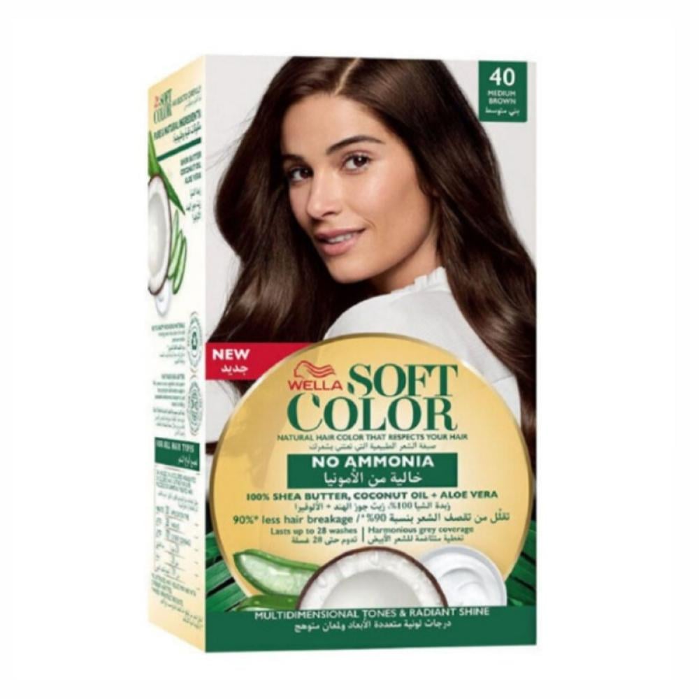 صبغة الشعر ويلا سوفت كلر – 40 بني متوسط تمنحك لونًا بنيًا متناسقًا وطبيعيًا مع لمعان صحي وحيوي. تركيبتها الخالية من الأمونيا تعتني بالشعر أثناء التلوين، فتتركه ناعمًا ومرنًا مع تغطية مثالية للشيب دون التسبب بالجفاف أو التقصف.