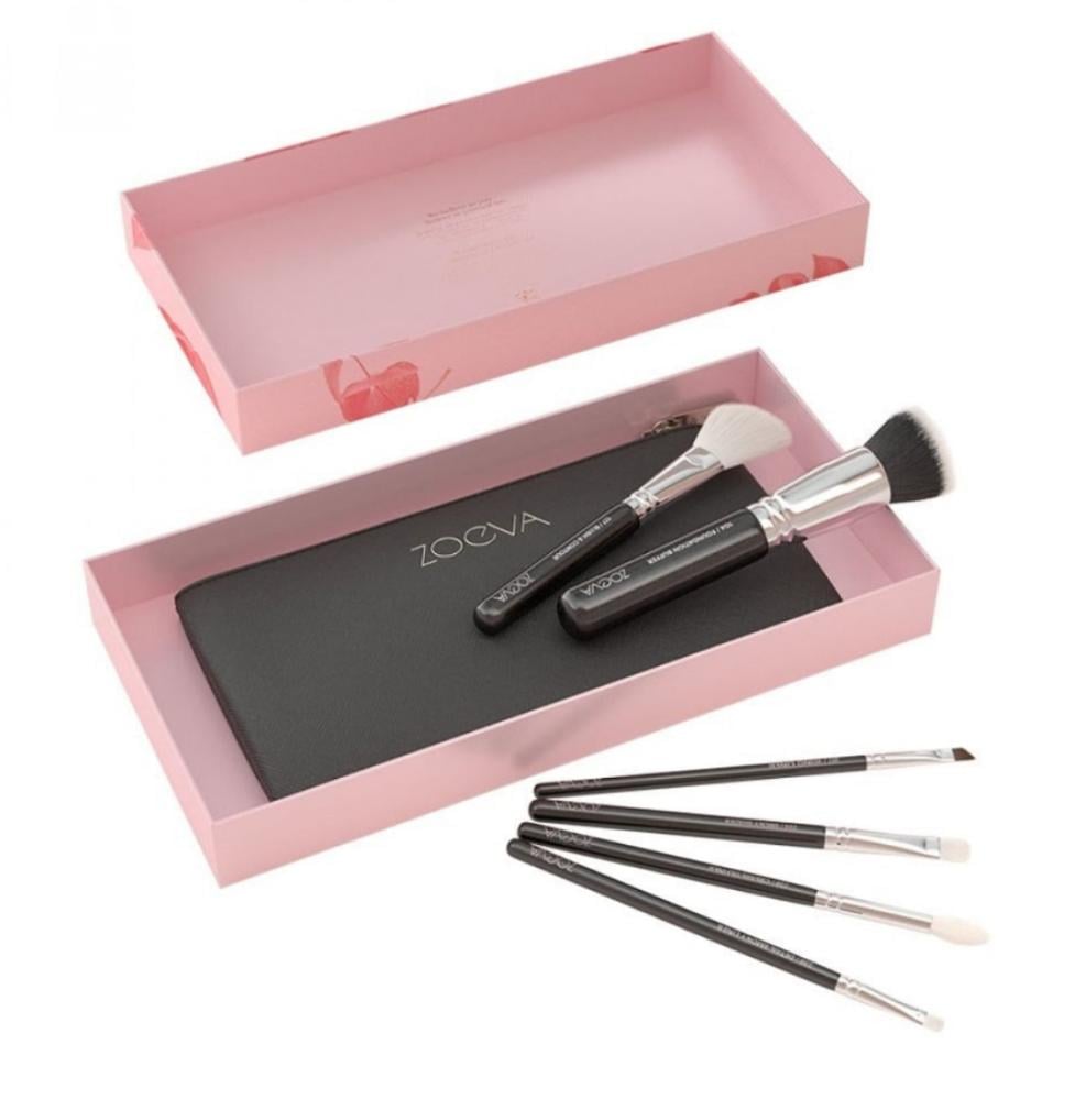 هي عبارة عن مجموعة مكونة من 6 قطع من فرش المكياج المعبأة في حقيبة سوداء أنيقة وهي تخدم كل متطلباتك في وضع المكياج بداية من وضع الكونتور إلى مزج كريم الأساس و وضع بودرة الأساس و الهايلايتر و ظلال العين و الآيلاينرو أحمر الخدود و إزالة البودرة الزائدة