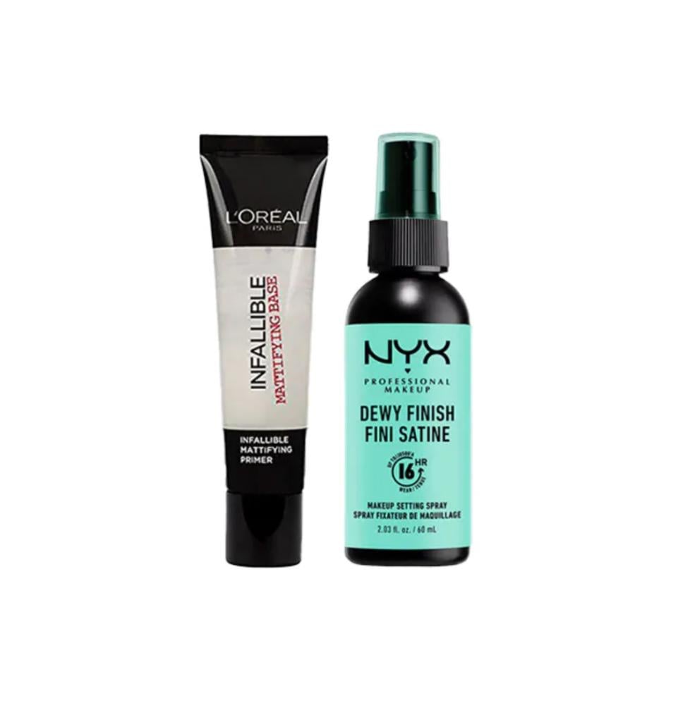 احصلي على مكياج ثابت وإطلالة مثالية تدوم طوال اليوم مع مجموعة تثبيت المكياج الاحترافية من متجر لولين، التي تجمع بين سبراي التثبيت من NYX وبريمير انفاليبل من لوريال باريس لضمان لمسة نهائية خالية من العيوب.