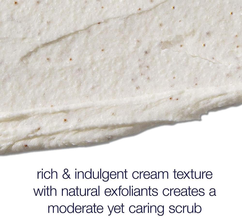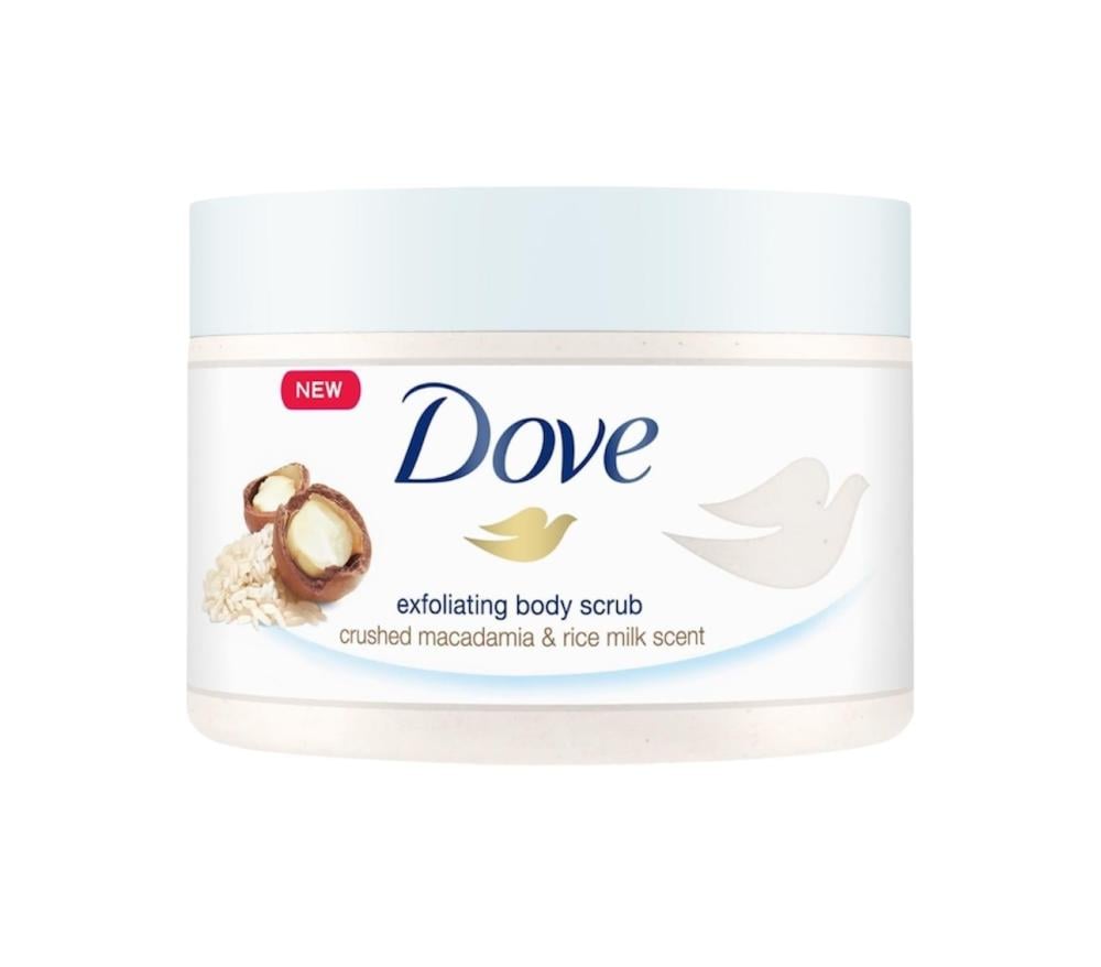 مقشر للجسم. يتميز هذا المقشر بتركيبة غنية تحتوي على حبيبات ناعمة من الماكداميا والأرز، مما يساعد على إزالة خلايا الجلد الميت وتنعيم البشرة. يتميز برائحة منعشة من الماكداميا وحليب الأرز.