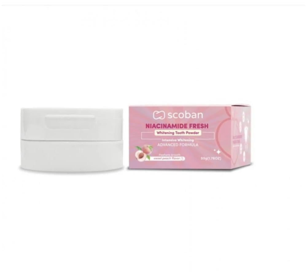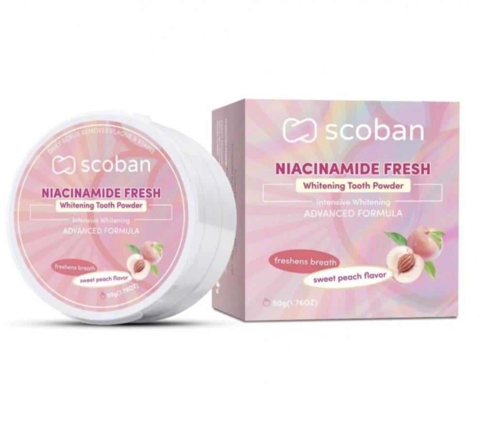 بودرة تبييض الأسنان من سكوبان بنكهة الخوخ هي تركيبة فعّالة وآمنة تزيل التصبغات السطحية وتعيد للأسنان بياضها الطبيعي، مع دعم صحة اللثة بفضل احتوائها على النياسيناميد (فيتامين B3) .