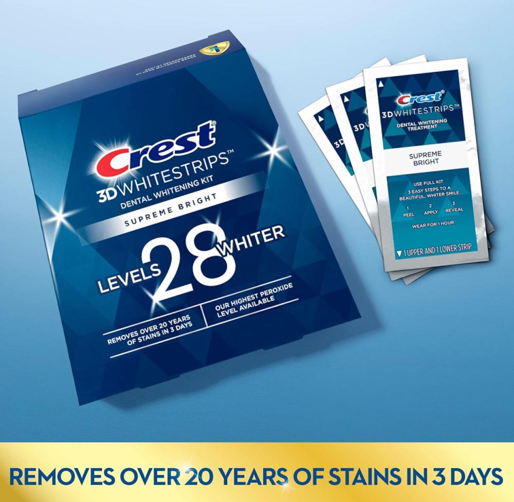لصقات سوبريم برايت لتبييض الأسنان من كرست ثري دي