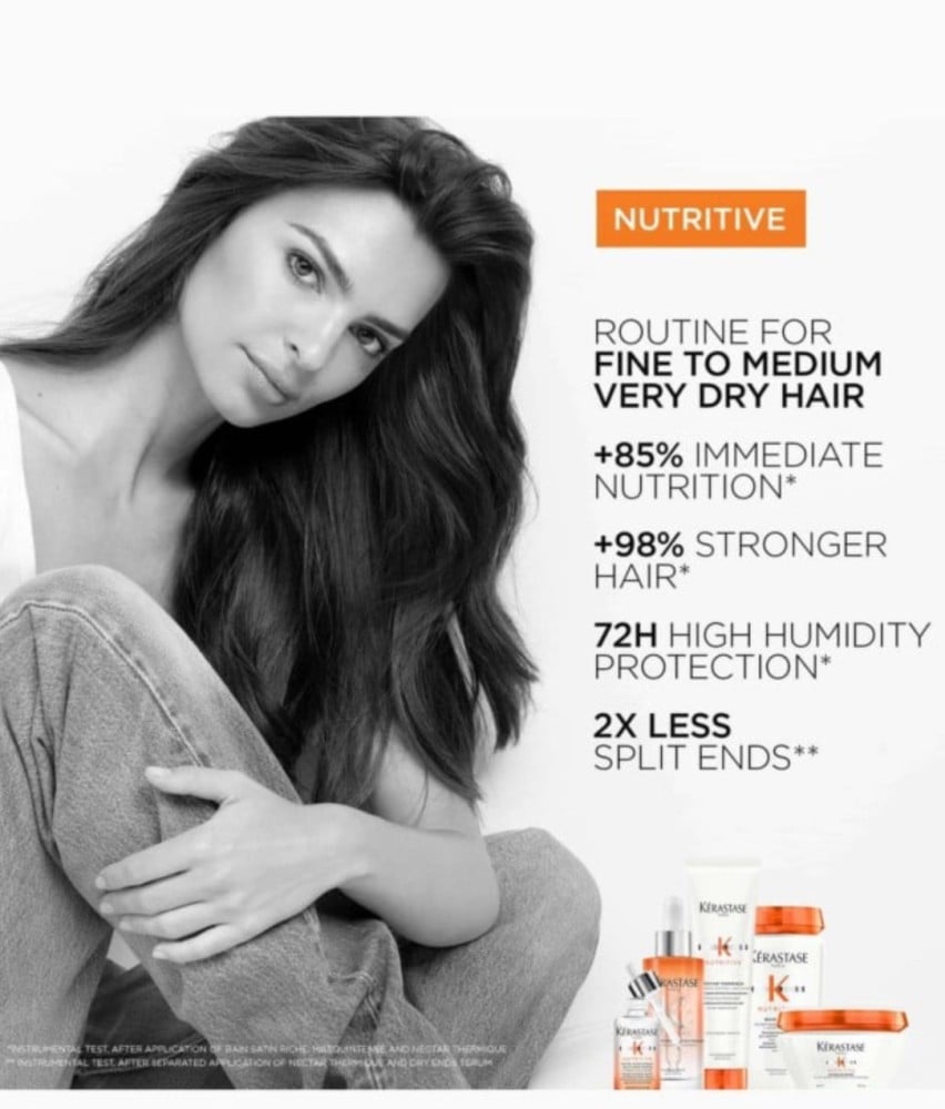 يساعد شامبو نوتريتيف بان ستان ريش الغني والمغذي بشكل مكثف من كيراستاس على تنظيف الشعر الجاف وترطيبه. ويتميز بتركيبة خفيفة الوزن تعمل على تجديد ترطيب الشعر وإزالة الشوائب منه. كما يحتوي على مركب إريسوم المميز للماركة ويقلل من التلف ويحمي من الجفاف، بينما يرطب النياسيناميد الشعر، للحصول على شعر نظيف ومنتعش وناعم كالحرير.