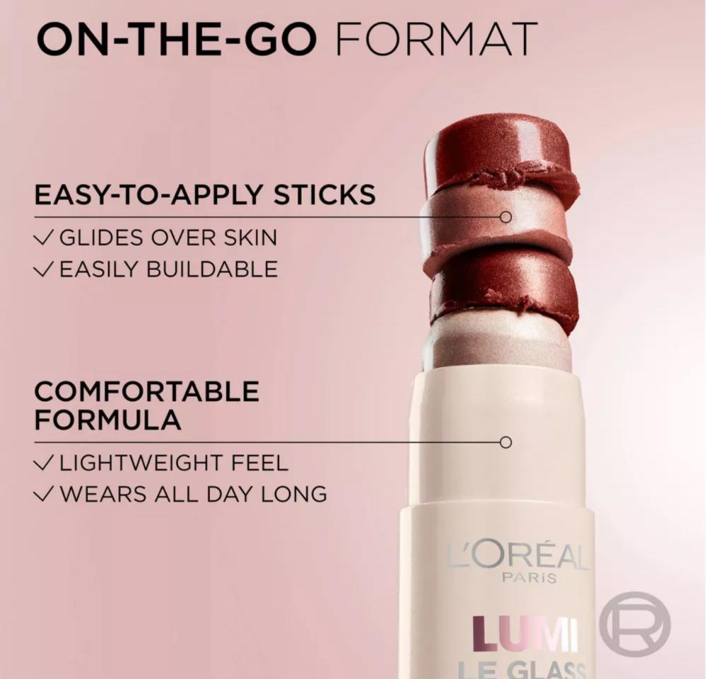 - اكتشفي أقلام Lumi Le Glass Sticks، لمسة نهائية زجاجية عاكسة تمنحكِ توهجًا فوريًا متعدد الأبعاد بلمسة واحدة، من لوريال باريس.