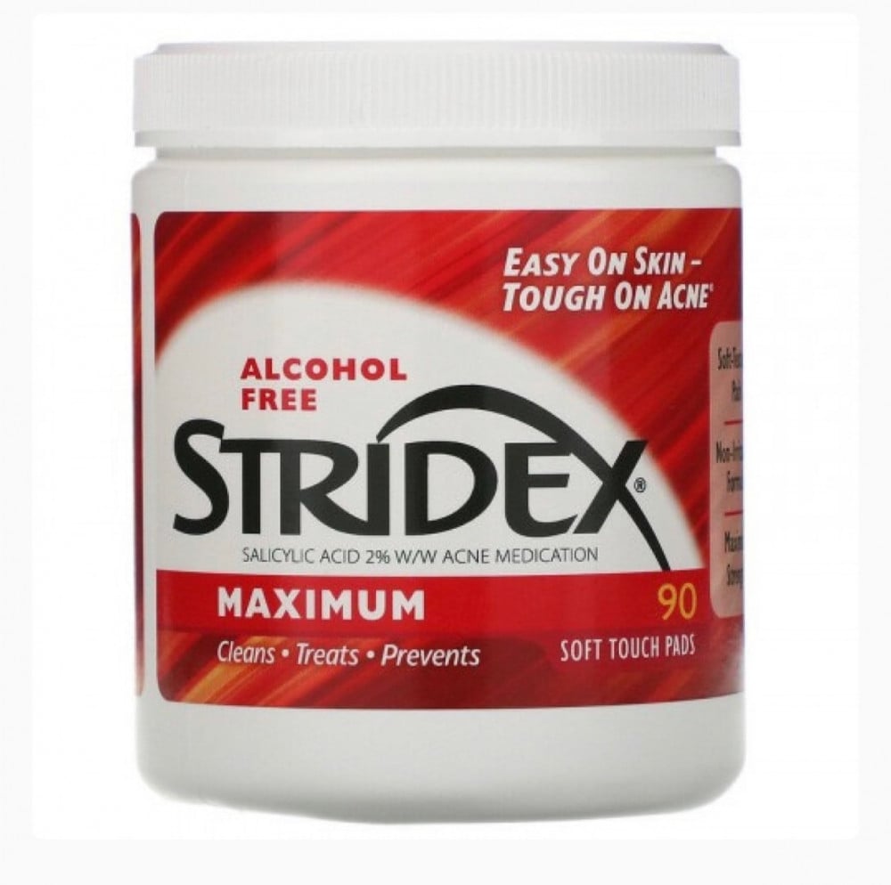 تحتوي وسادات Stridex Maximum على (2٪ حمض الساليسيليك) خالية تمامًا من الكحول