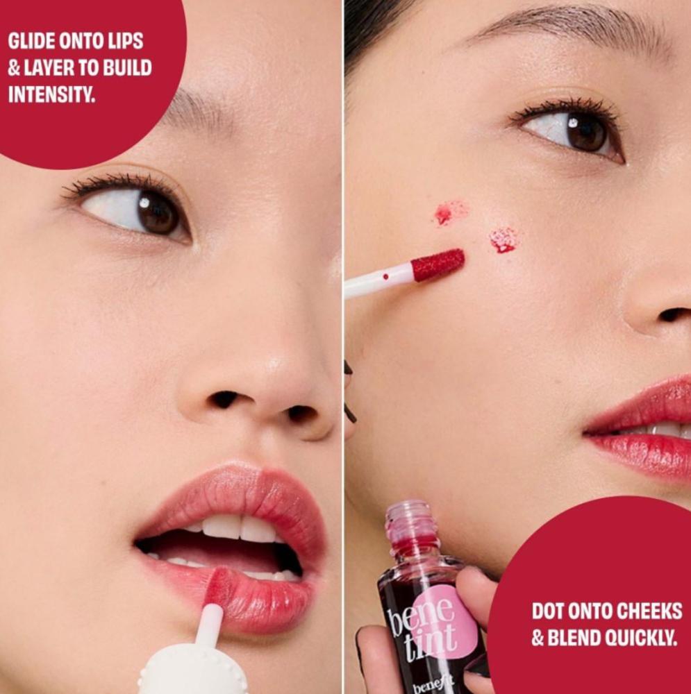 - أحمر شفاه سائل BeneTint: هذا المنتج متعدد الاستخدامات يمكن استخدامه كأحمر شفاه، أو أحمر خدود، أو حتى كأحمر عيون. يمنح لونًا ورديًا طبيعيًا ومرطبًا للشفاه.