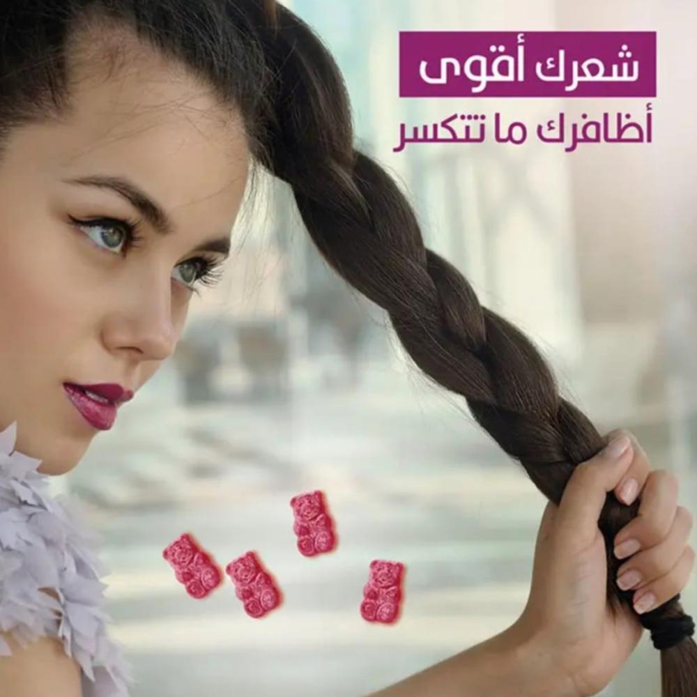 هو أول حلوى فيتامينات لزيادة طول وقوة الشعر وجمال بشرتك في آن واحد.