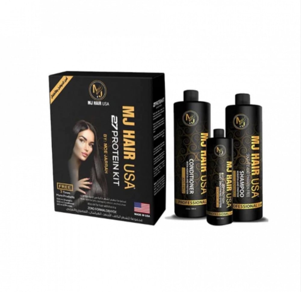 اغسل الشعر بشامبو ام جي ولا تضعي بلسم الشعر أو أي عوامل تصفيف أخرى جففي 90٪ ضعي بروتين MJ Hair 27 في الشعر باستخدام مشط صغير للأسنان لتوزيعه على الشعر حتى يتشبع الشعر بالكامل اتركيه على الشعر لمدة 45 دقيقة اشطفي الشعر بحوالي 70٪ وجففي الشعر تمامًا ووزعي على أجزاء صغيرة من الشعر 10-12 مرة باستخدام ام جي هير فلات ارون