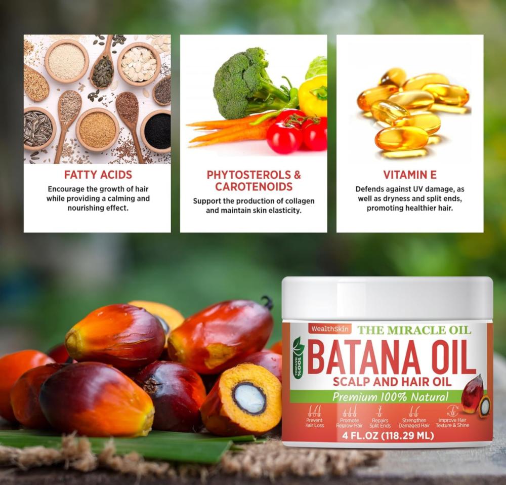 أصل نقي وعضوي: زيت باتانا لنمو الشعر مصدره هندوراس ومستخرج من جوز إلييس أوليفيرا، زيت باتانا الخاص بنا نقي وعضوي بنسبة 100%. زيت باتانا لنمو الشعر يحظى باحترام شعب ميسكيتو الأصلي لعدة قرون باعتباره "الزيت المعجزة" لتعزيز نمو الشعر وقوته.