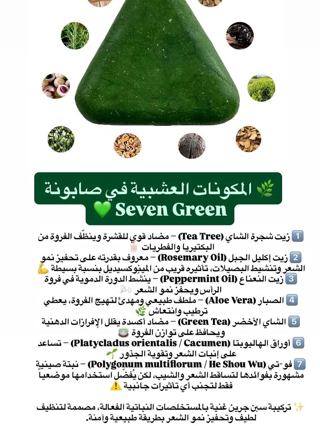 🌿 الصابون الأخضر Nature Seven – مقوّي ومُنعش للشعر