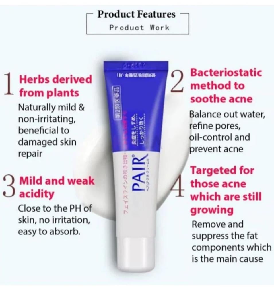 كريم PAIR الياباني من شركة Lion هو علاج موضعي مخصص لمشاكل حب الشباب والالتهابات الجلدية. تركيبته الطبية تحتوي على مكونات فعّالة تساعد في تهدئة الاحمرار، تقليل الالتهاب، ومحاربة البكتيريا المسببة لحب الشباب. يتميز بملمس خفيف يمتص بسرعة دون أن يترك أثر زيتي، مما يجعله مناسب للاستخدام اليومي حتى للبشرة الحساسة.