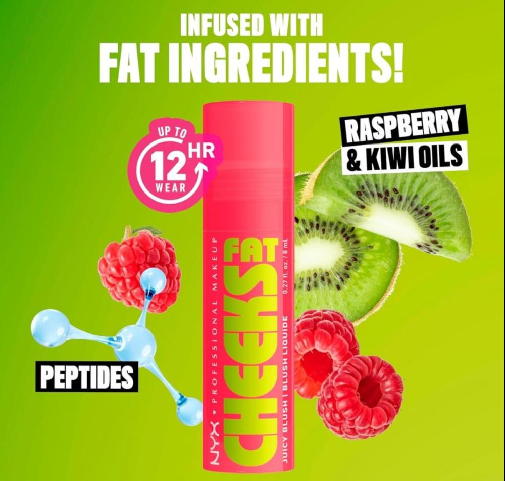 بلاشر فات شيكس من نيكس – 06 بونسين بيري أحمر خدود سائل خفيف وسهل الدمج يمنح الخدود لمسة طبيعية مشرقة 🌸 ولونًا حيويًا يدوم طويلًا ⏳. تركيبته السائلة تسمح بالتحكم في شدة اللون 🎨، لإطلالة ناعمة أو أكثر كثافة حسب الرغبة.