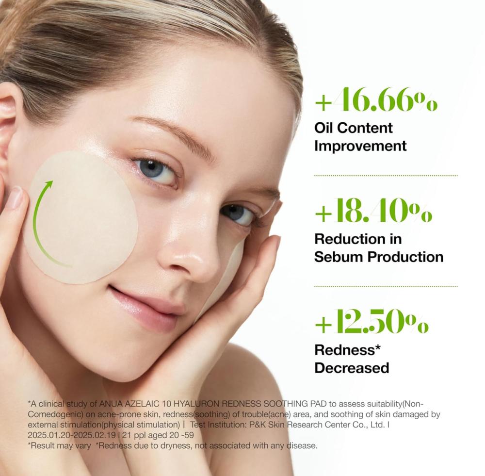 ✨ وسادات كورية مهدئة للعناية بالبشرة الحساسة والمعرضة للبقع، تحتوي على حمض الأزيليك 10% وحمض الهيالورونيك لتهدئة الاحمرار وتنظيف المسام وترطيب البشرة بعمق.
