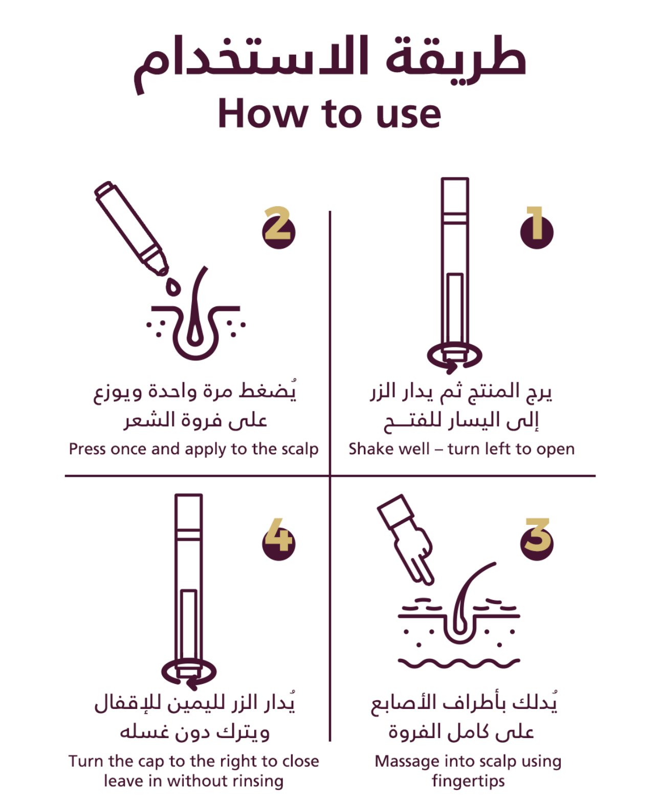 3. لا يُغسل بعد الاستخدام، يُترك حتى تمتصه الفروة بالكامل.