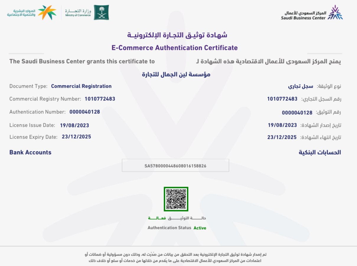 شهادة توثيق التجارة الإكترونية لدى المركز السعودي للأعمال