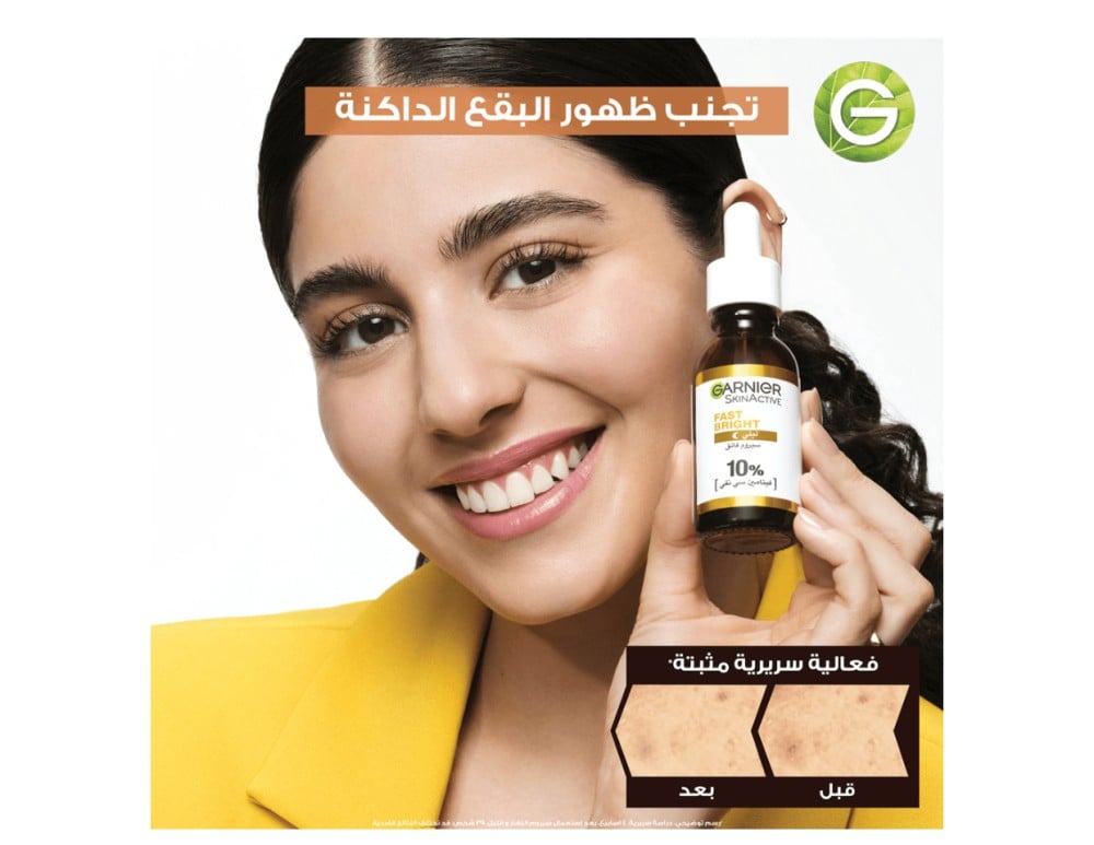 سيروم ليلي للوجه سكين آكتيف إشراقة سريعة مع 10% فيتامين سي نقي من غارنييهاستيقظ ببشرة أكثر إشراقةتمتع بعناية تتغلغل لأعماق بشرتك مع سيروم غارنييه لإشراقة سريعة.تركيبة مركزة بنسبة 10% من الفيتامين جـ النقي ليعمل على توحيد لون البشرة بشكل فعال.يعزز من إشراقة البشرة.يقلل من البقع الداكنة بشكل ملحوظ.عناية مثالية أثناء الليل.يجدد خلايا البشرة.تركيبة نباتية.تم اختباره من قِبل أطباء الجلدية.تركيبة خفيفة الوزن.لا يترك بقايا لزجة على البشرة.